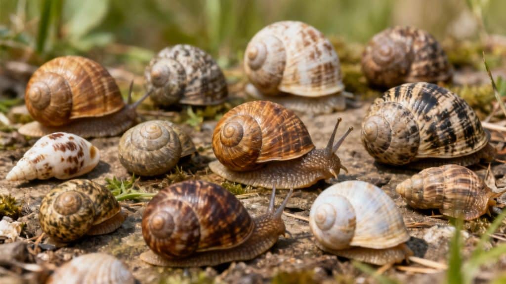 Parmi les autres espèces notables, l’Helix lucorum se distingue par sa coquille ornée de bandes spiralées contrastées. Cette espèce méditerranéenne colonise progressivement le sud de la France et présente des caractéristiques morphologiques proches de l’escargot de Bourgogne, tout en restant de taille plus modeste, un comportement influencé par l’humidité, qui explique aussi la raison pour laquelle les escargots sortent quand il pleut.